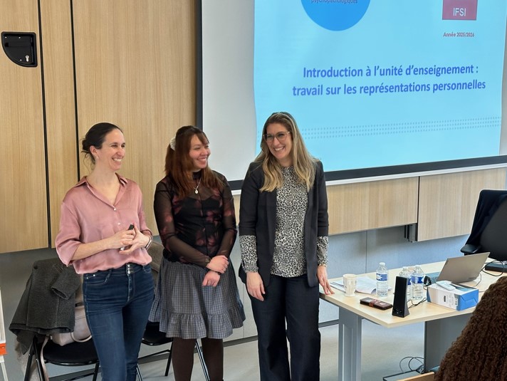 Dernièrement, dans le cadre de l’unité d’enseignements traitant des Processus Psychopathologiques ( UE 2.6 S2), des infirmières accompagnées d’une patiente sont venues expliquer la complexité de la prise en charge de la maladie psychique / psychiatrique. La personne en souffrant a pu apporter son témoignage non seulement sur son vécu de la maladie mais également sur les bienfaits de l’accompagnement soignant dont elle bénéficie.
